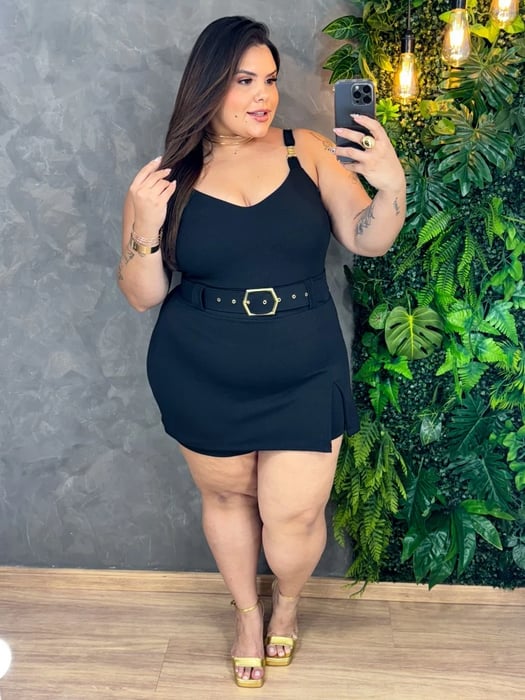 Macaquinho Like-Luxo, saia fake, com fenda, modelagem c/ cinto fivela luxo, fabricado no crepe de malha, TAM G1 plus(48/52)